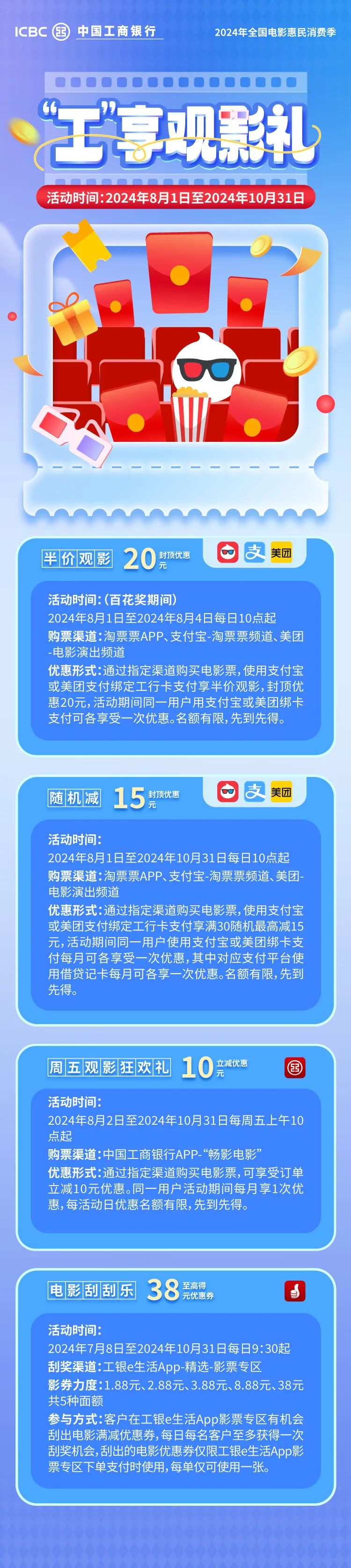 8月1日期,半價(jià)觀影、立減10元、最高38元優(yōu)惠券、隨機(jī)立減!