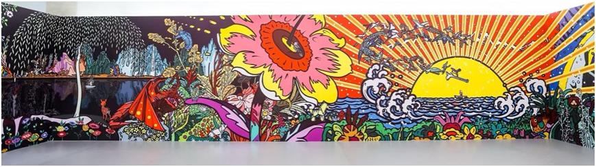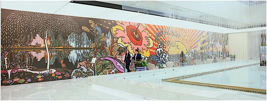 作為一次金融與藝術(shù)深度融合的跨界合作,該展覽展出了卜樺兩部四十多米長的巨幕數(shù)字藝術(shù)作品《重逢2025》、《宇宙花園二》以及26米美術(shù)館級數(shù)字藝術(shù)壁畫《奇跡般》等作品,并以其作品中明艷絢麗的色彩和豐富繁茂的自然意象為靈感來源,設(shè)計(jì)制作了多個立體造型裝置,在視覺上為觀眾構(gòu)建一個美好奇妙的數(shù)字花海,觀眾可沉浸式置身其中打卡拍照,體驗(yàn)世博會未來館導(dǎo)演、國際知名藝術(shù)家卜樺創(chuàng)造的精神花園。